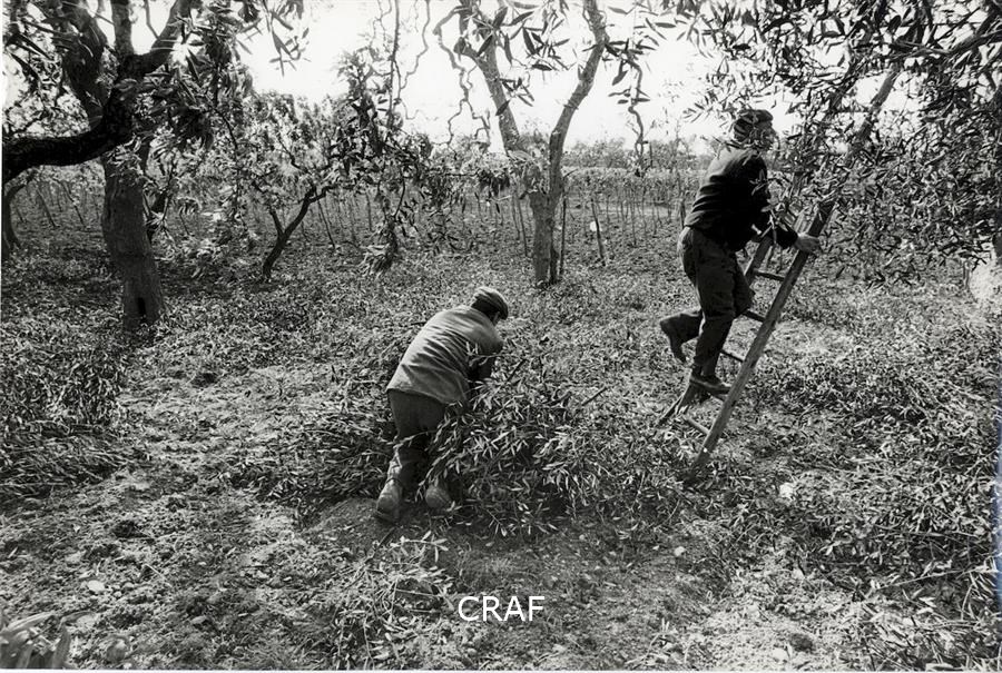 Due uomini potano gli ulivi