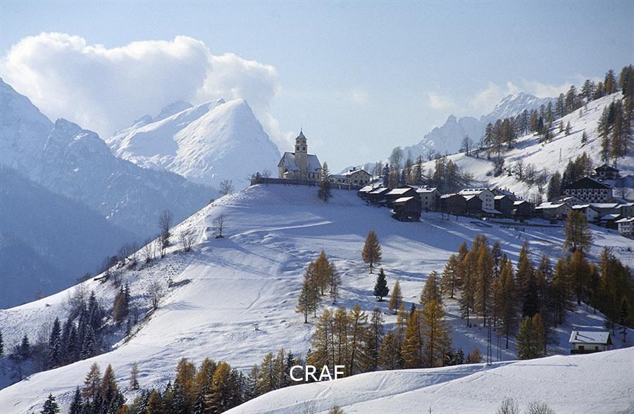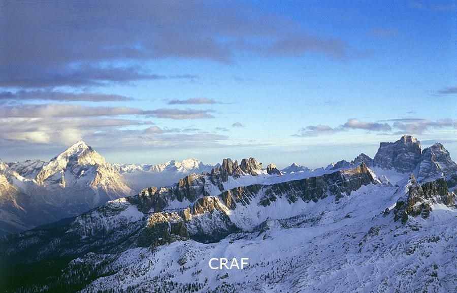 Veduta delle montagne innevate dal rifugio Lagazuoi