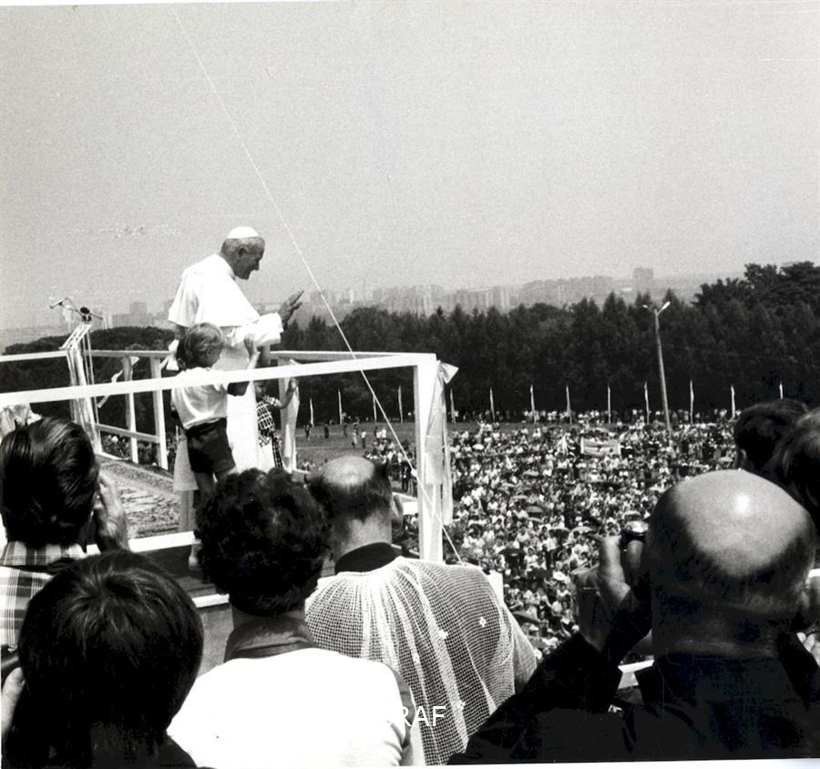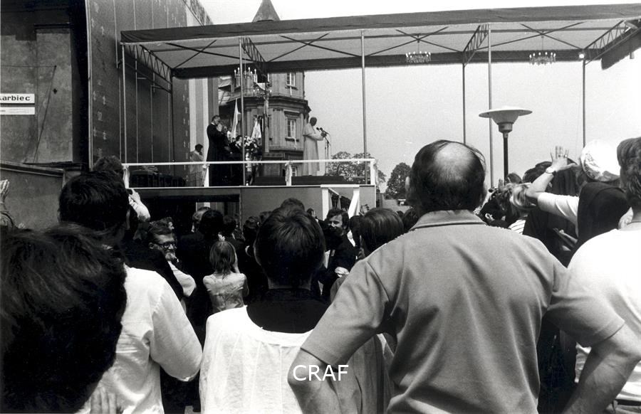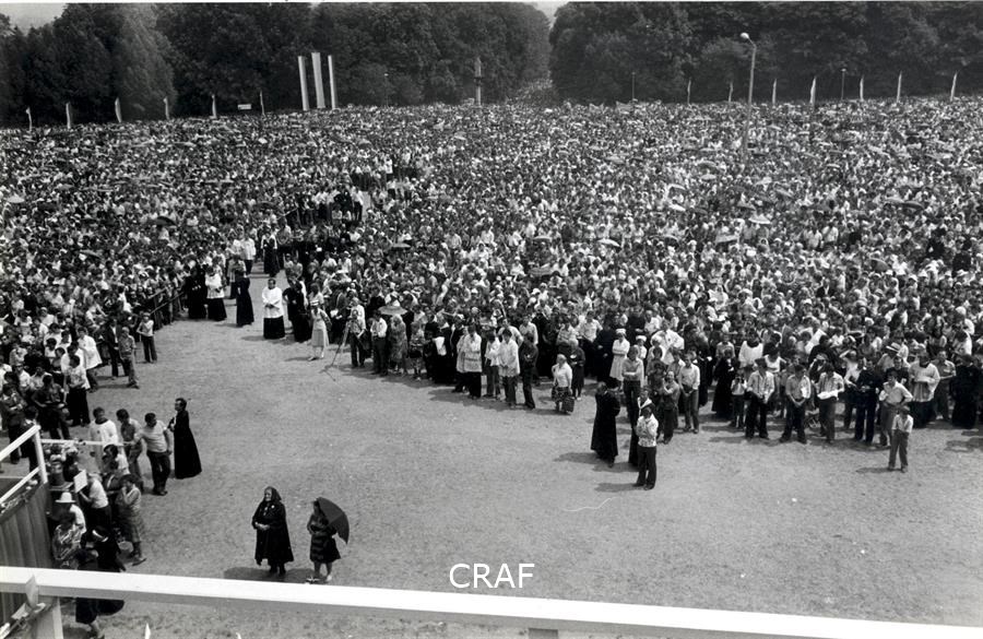 Raduno dei fedeli a Czestochowa; i fedeli ascoltano il Papa