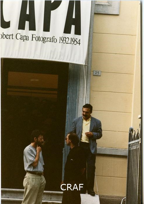 Inaugurazione della mostra di Robert Capa all'ingresso della sede della Somsi...