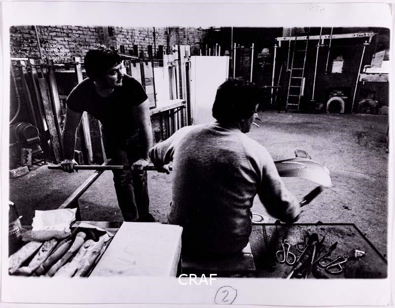Maestri vetrai nelle fornaci di Murano. Didascalia riportata sotto all'immagine...