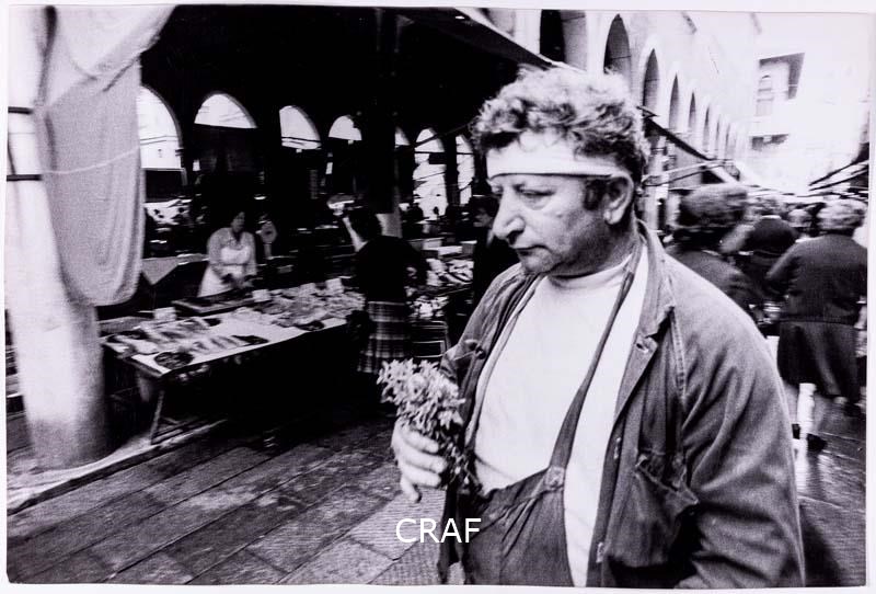 Il mercato in campo S. Margherita. Didascalia riportata sotto all'immagine...
