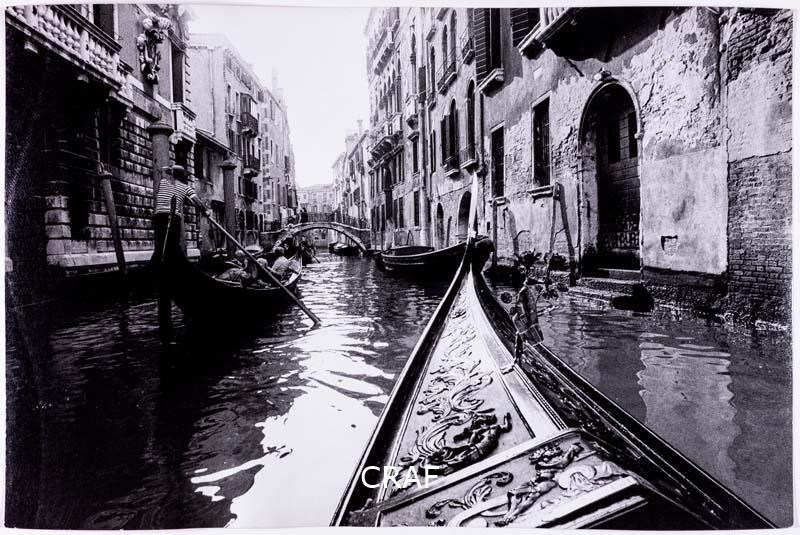 Il silenzioso passaggio delle gondole tra le quinte degli edifici dagli intonaci corrosi dalla salsedine