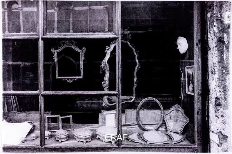 La vetrina della bottega di un intagliatore di cornici. Didascalia riportata...