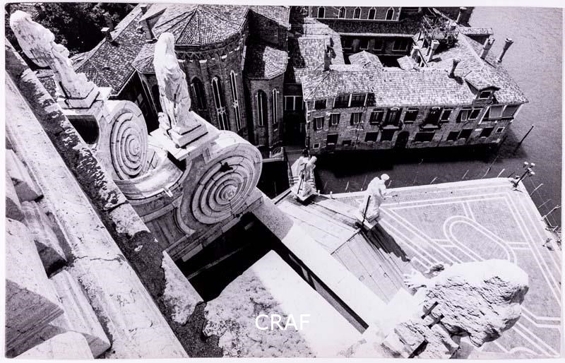 Dai contrafforti a volute della cupola della chiesa della Salute. Didascalia...