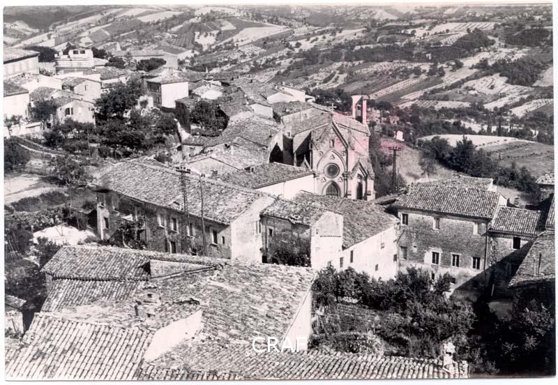 Veduta urbana di San Ginesio (MC) e delle campagne circostanti. Al centro dello...