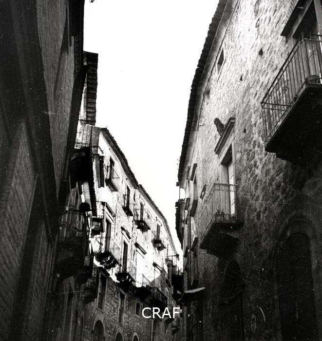 Scorcio assolato di un vicolo con i sui palazzi e la vita del paese, Sicilia....