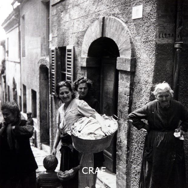 Donne intente a lavare i panni al pozzo del paese, Sicilia. Immagine scattata...