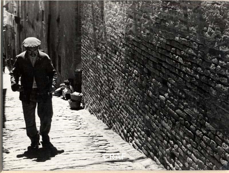 Un uomo in cammino tra le strade del paese