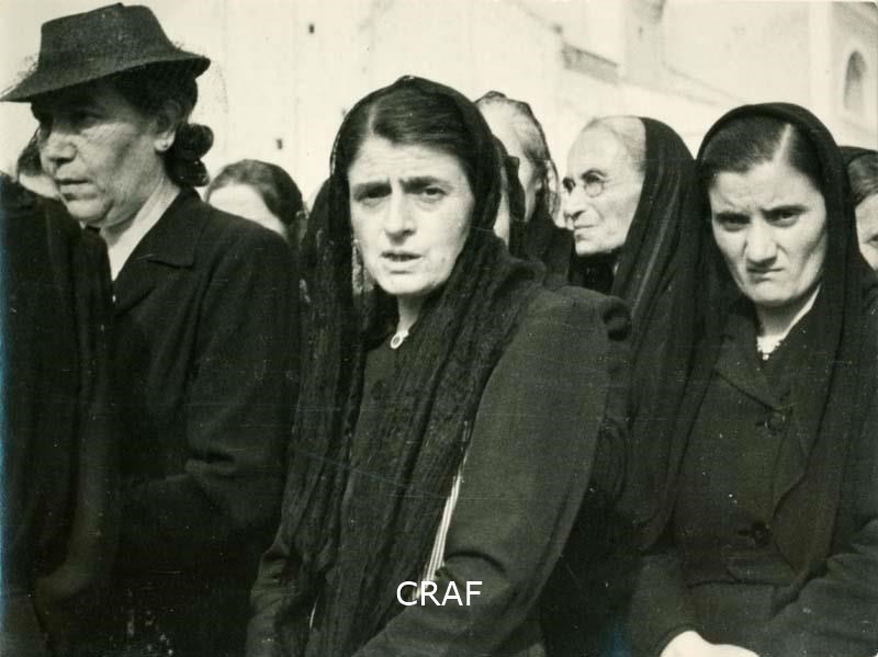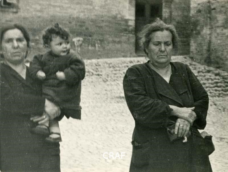 Donne ritratte con un infante in braccio scure in volto e nell'aspetto....
