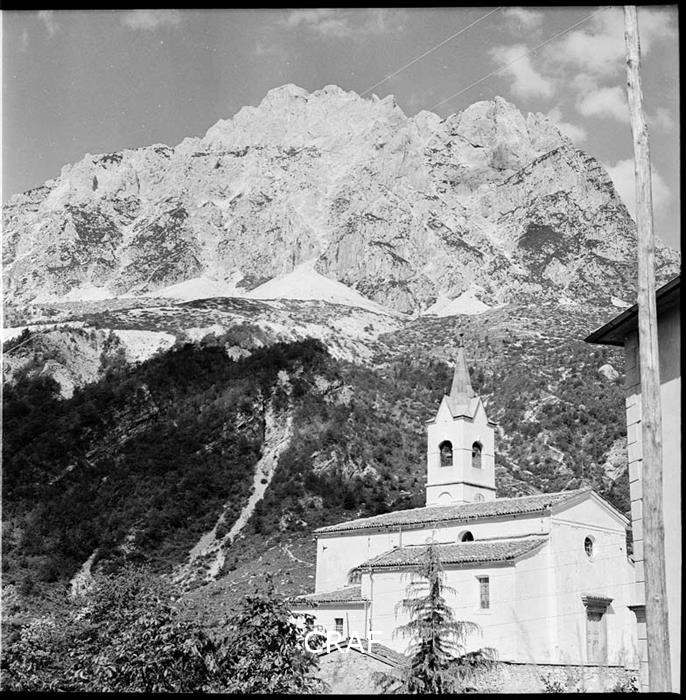 Scorcio della chiesa di San Floriano Martire a Dordolla e del versante...