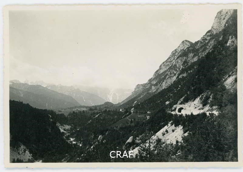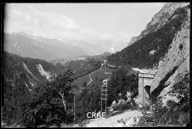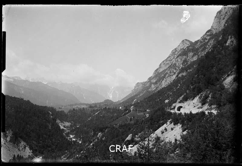 Veduta dell'Alta Val Tagliamento con il portale est della Galleria del Passo...