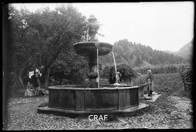 Veduta della fontana ottocentesca con lavatoio di Borgo Vico, alcune donne...
