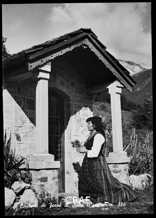 Riproduzione del ritratto di una ragazza in abiti carnici che prega...
