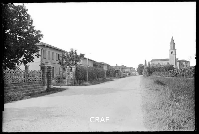 Veduta di via XXV Aprile, già via San Lorenzo, con la chiesa parrocchiale di...