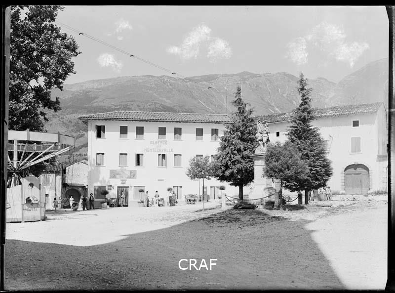 Veduta dell'albergo Montecavallo e del Monumento ai Caduti in piazza Vittorio...
