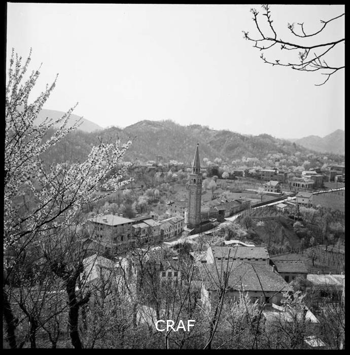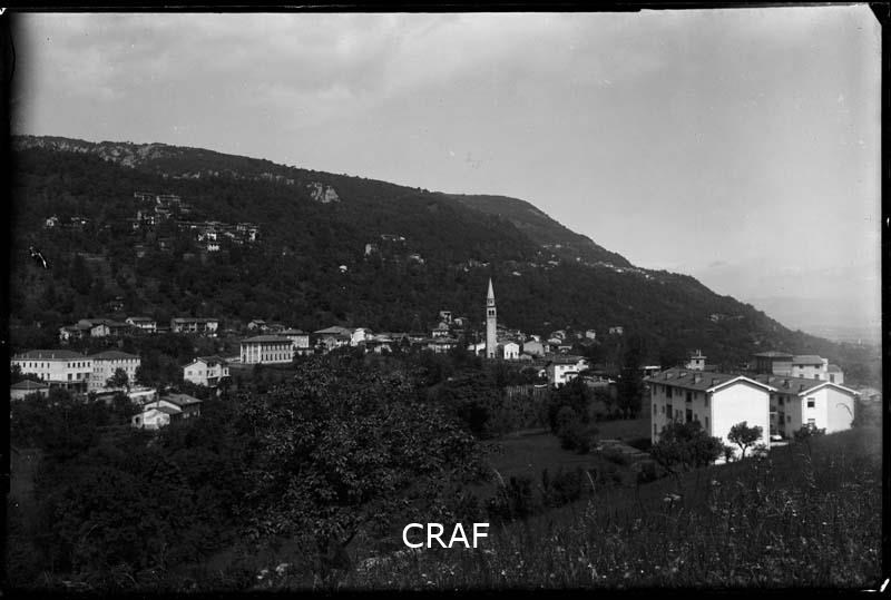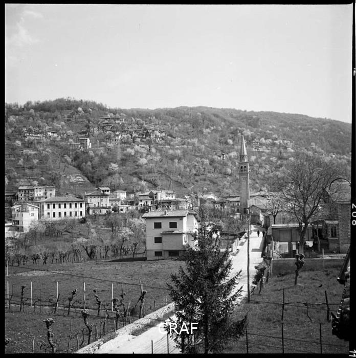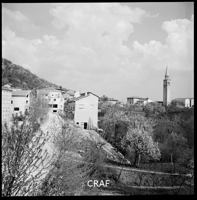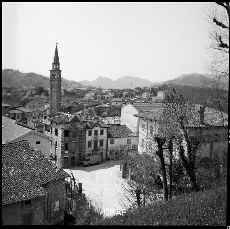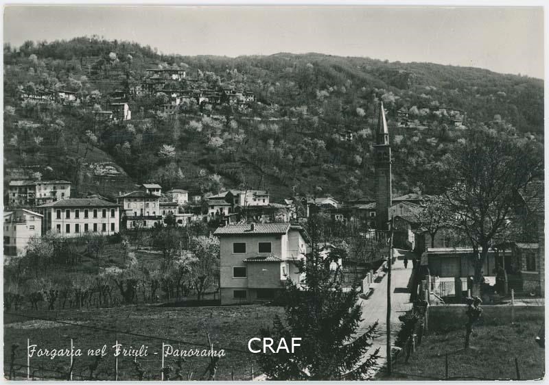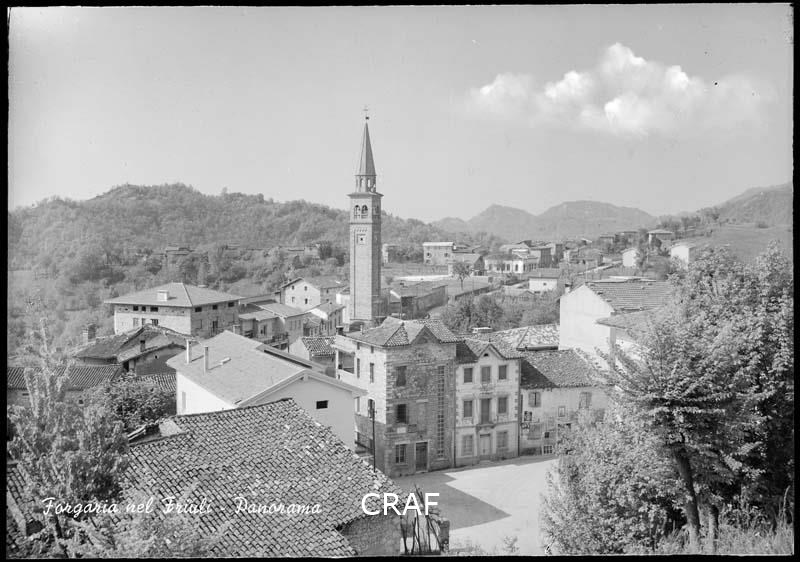 Veduta di Forgaria ripresa probabilmente da via Grap; a destra la chiesa di San...
