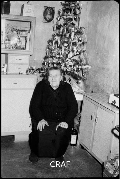 Ritratto dell'anziana Maria Nonis con abiti scuri: seduta su di una sedia...