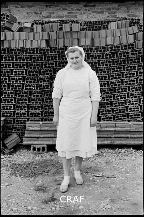Ritratto di una donna, con abiti e velo bianchi, probabilmente un'infermiera....