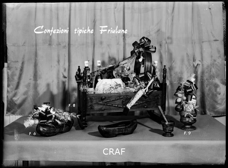 Composizione natalizia di prodotti tipici esposti in contenitori artigianali di...