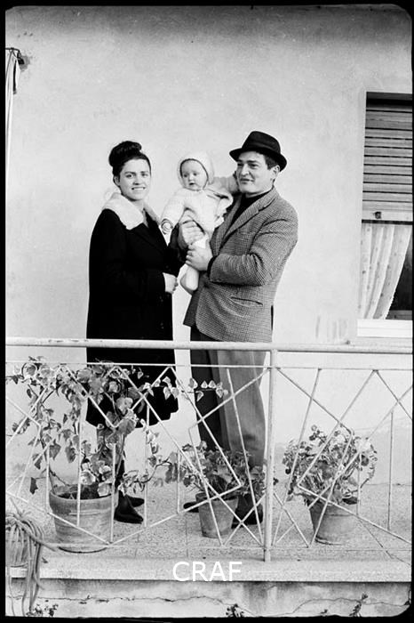 Ritratto della famiglia Cassin, i fornai di Bagnarola in piedi sul balcone di...