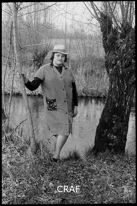 Ritratto di Elda Quarin fra gli alberi che si stagliano accanto ad un ruscello...