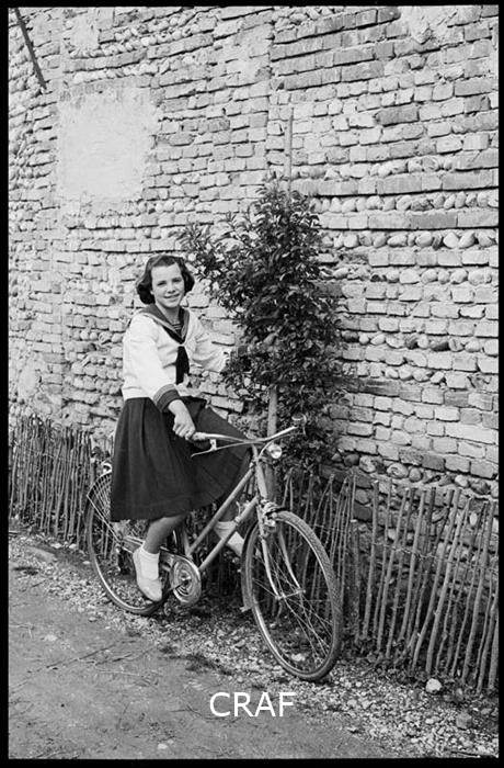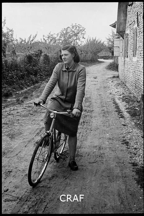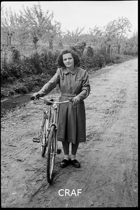 Ritratto di Alma Moretto accanto alla sua bicicletta su una strada sterrata di...