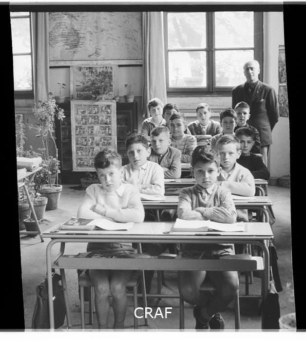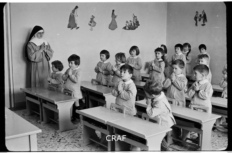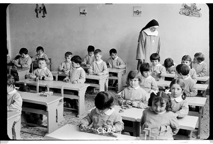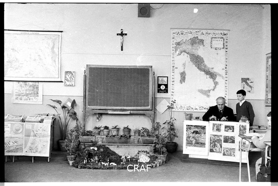 All'interno di una classe delle Scuole elementari, a destra il maestro Augusto...