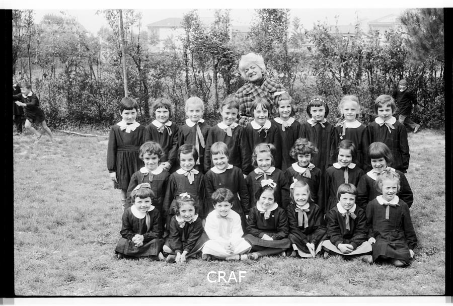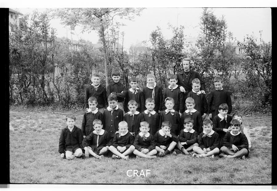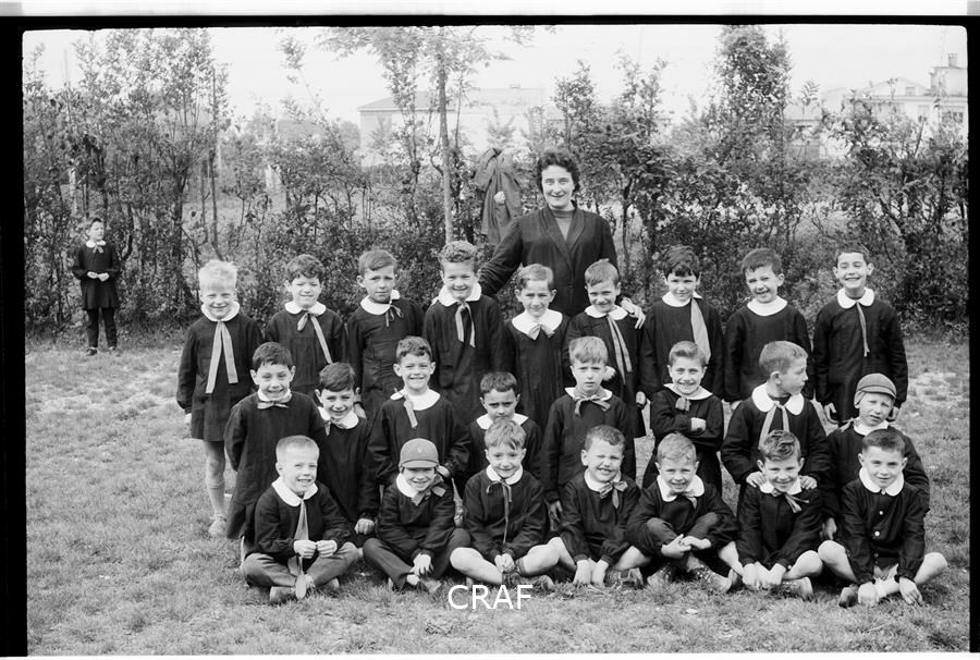 Ritratto di un gruppo di bambini assieme alla maestra Maria Luisa Dean ritratti...