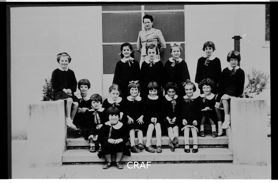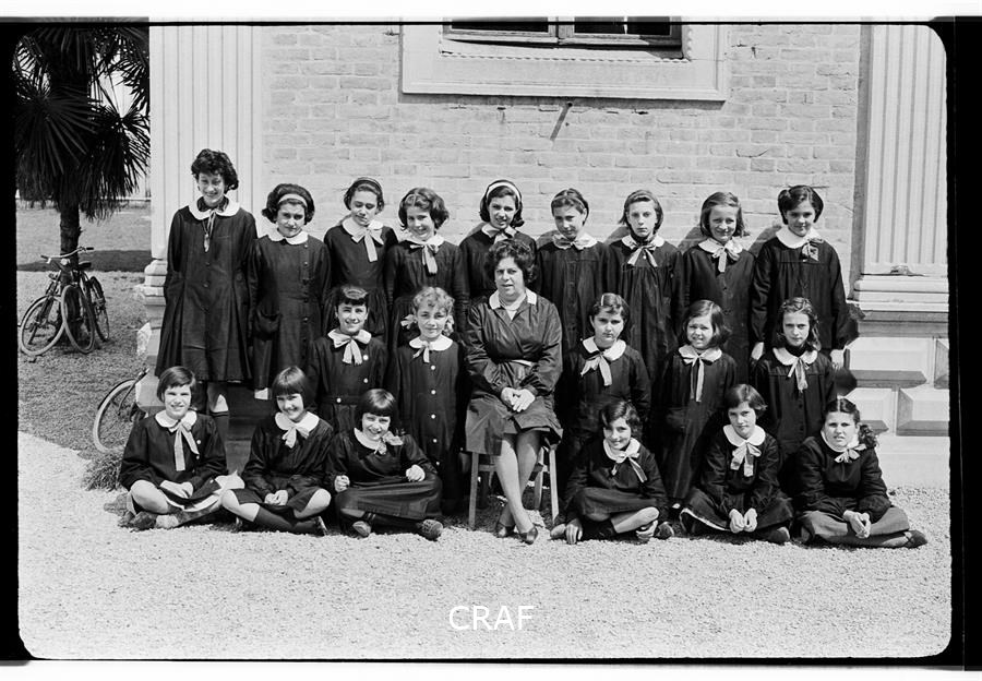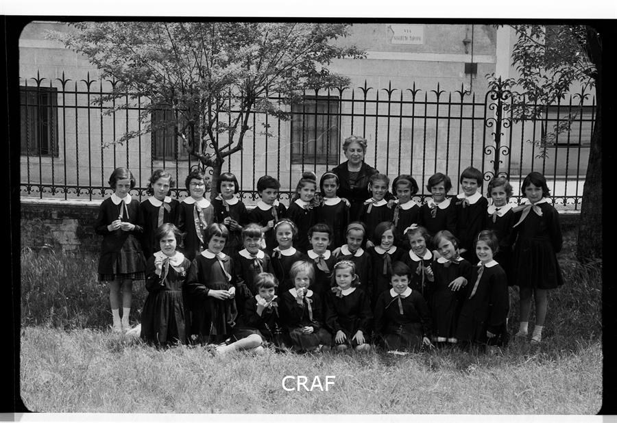 Ritratto di un gruppo di bambine assieme alla maestra Gibellato frequentanti...