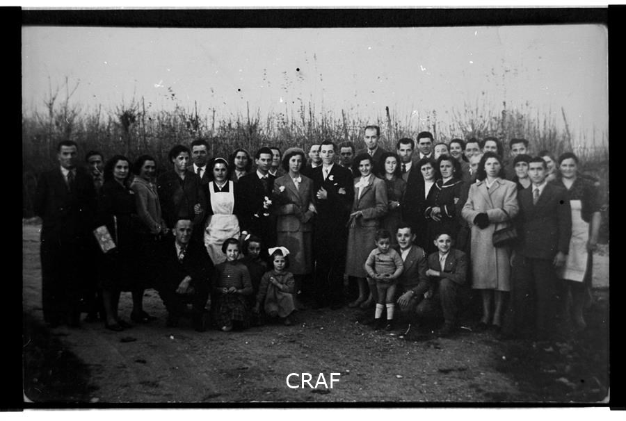 Ritratto di un gruppo di amici, al centro i neo coniugi Rosi e Remigio...