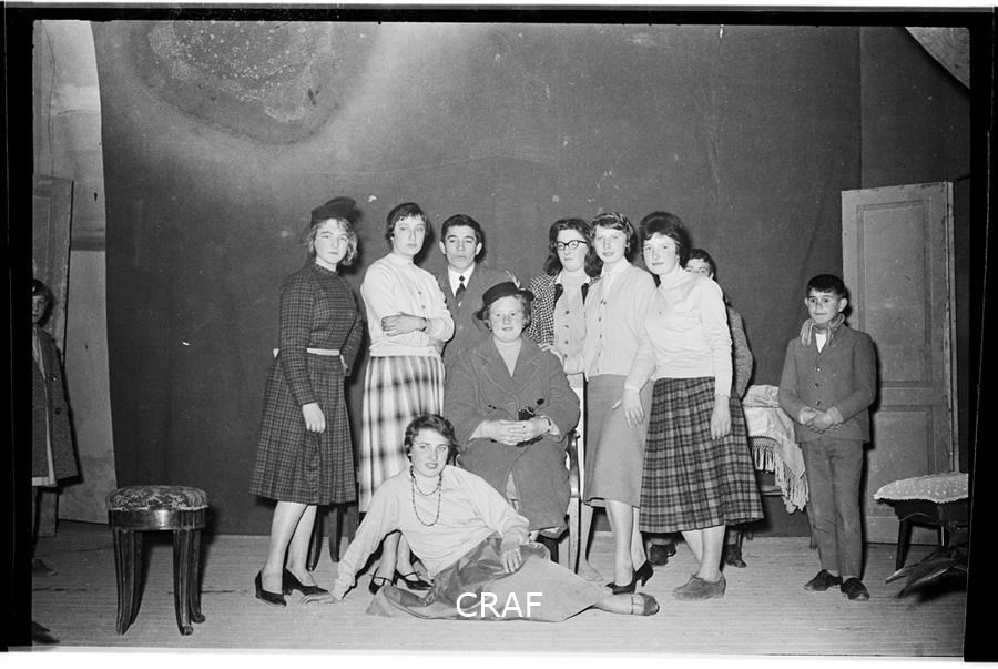 Ritratto di un gruppo teatrale composto da ragazzi e ragazze sopra un...