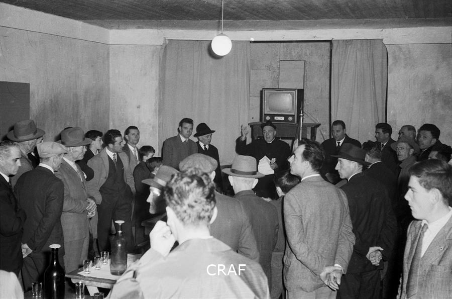 Momento conviviale, probabilmente all'interno di un edificio della parrocchia...