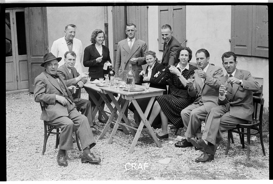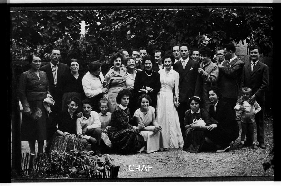 Ritratto di un gruppo di amici, al centro i neo coniugi Brussolo e Pighin, in...