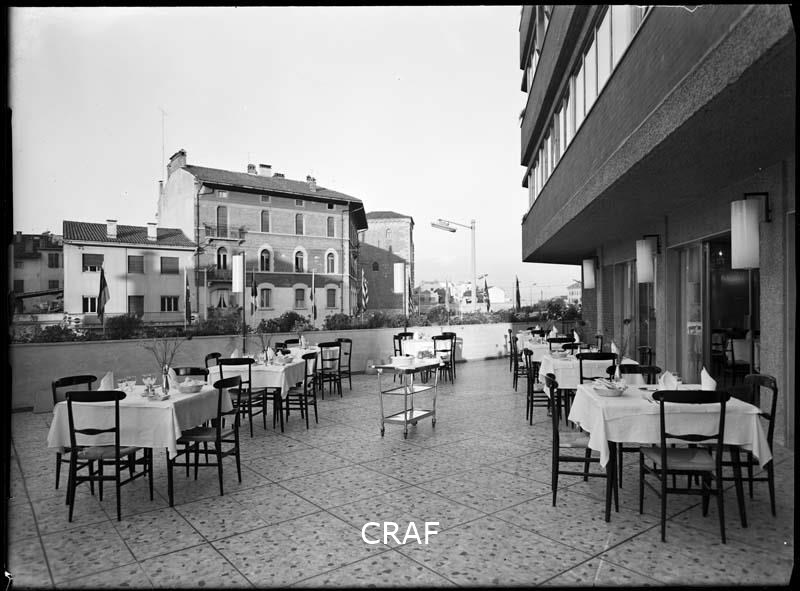 La terrazza del ristorante dell'Hotel Cristallo a Udine con le tavole...