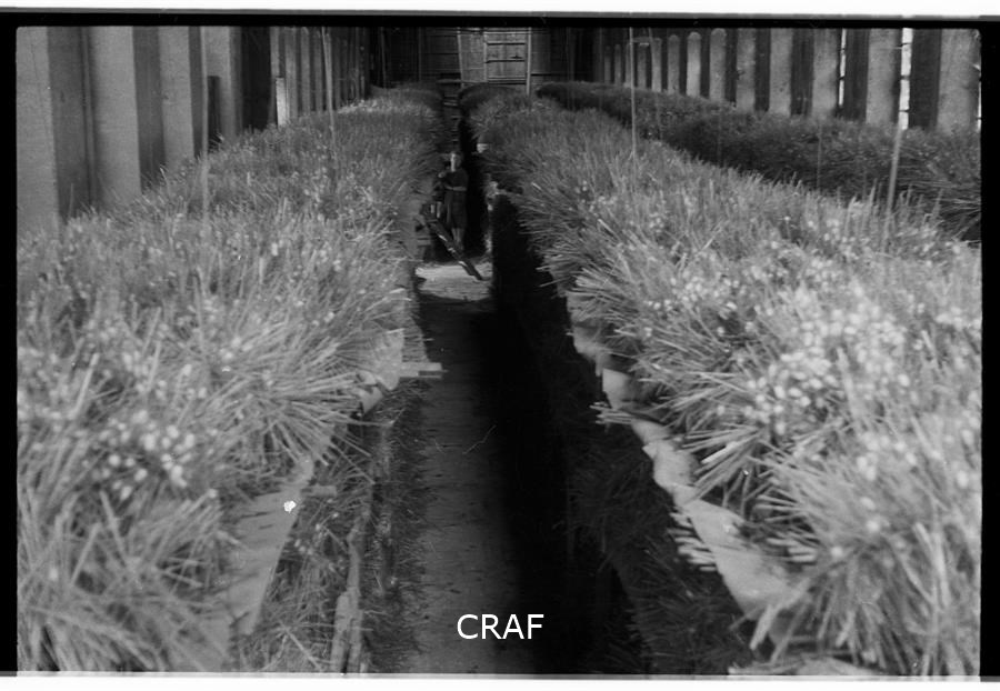 Veduta dei bozzoli dei bachi da seta giunti a maturazione all'interno...