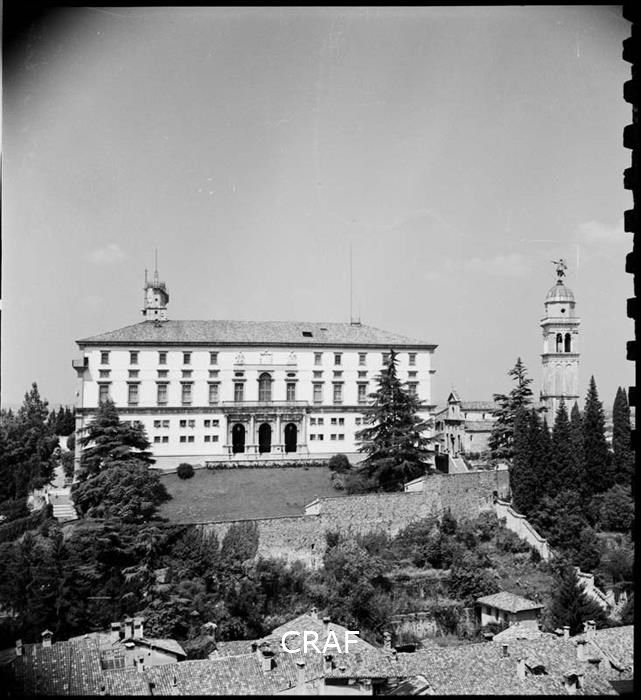 Veduta panoramica del colle e del Castello di Udine ripresa da un'apertura...
