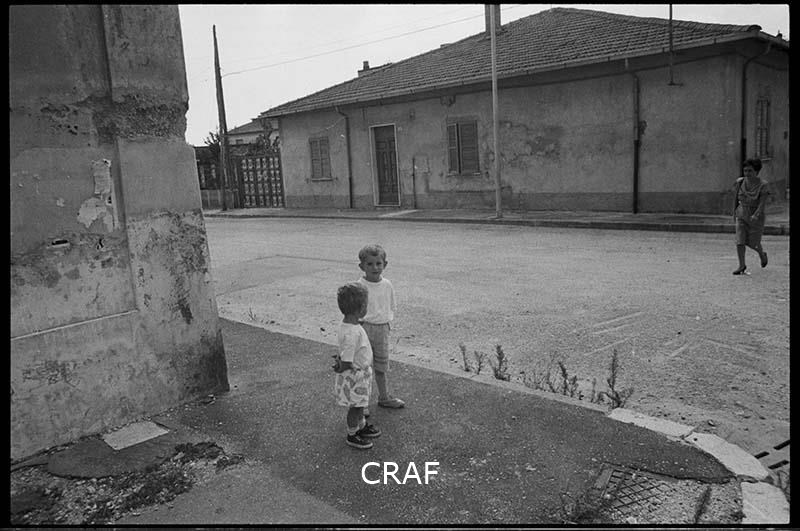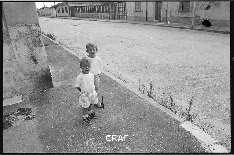 Due bambini in attesa su un marciapiede di San Pelino, frazione di Avezzano...