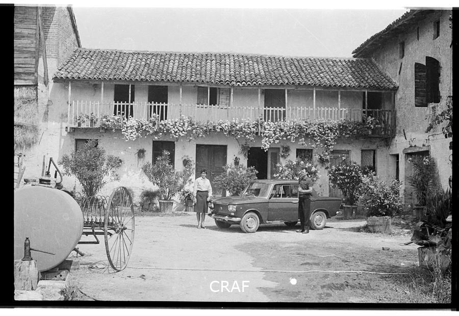 Ritratto dei coniugi Nimis nel cortile di una casa che si trova nei pressi del...