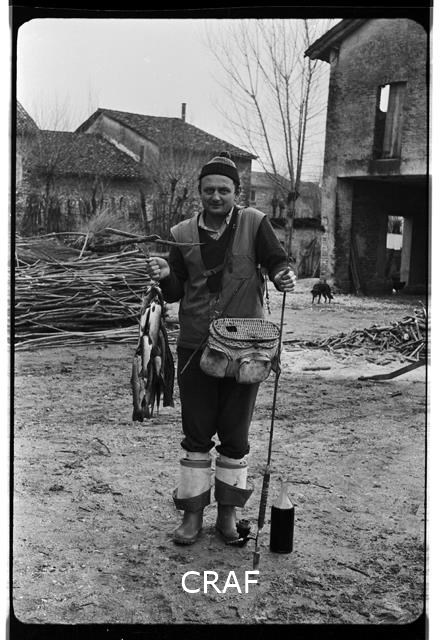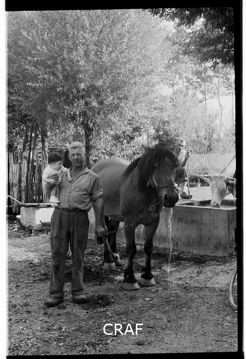 Ritratto di Francescutto Pietro in un cortile di una casa rurale, mentre...