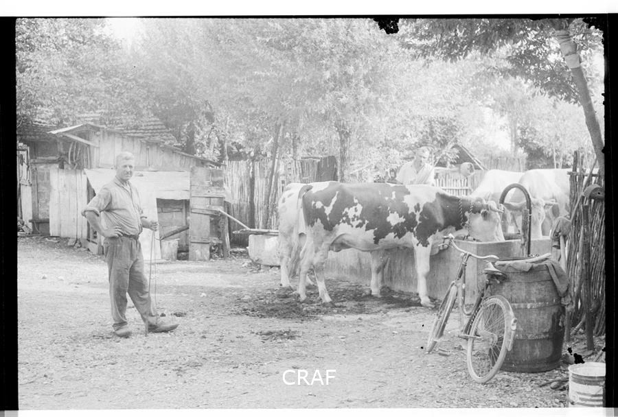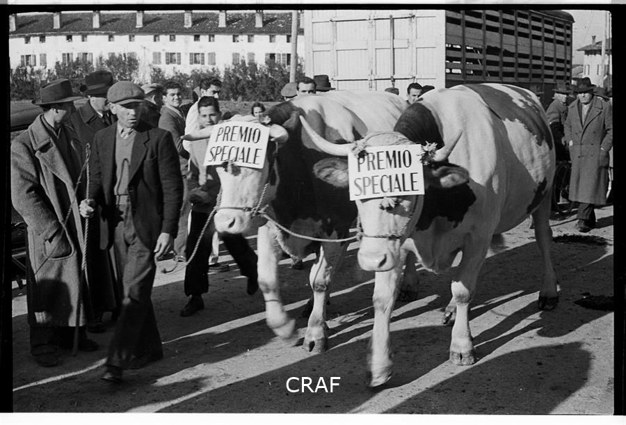 Anselmo Cassin conduce due buoi a cui è stato aggiudicato un premio speciale...