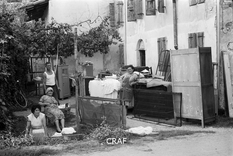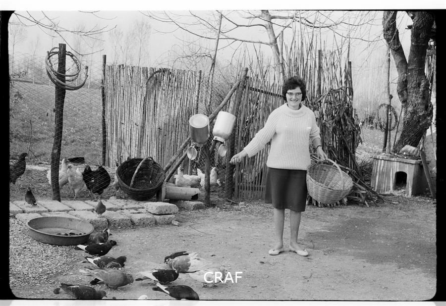 Ritratto di Marta Gerarduz nel cortile della propria casa mentre sparge del...