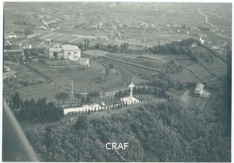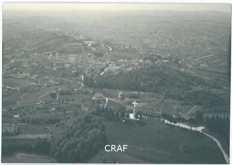 Panorama aereo del colle San Lorenzo con il Monumento ai Caduti e la croce...
