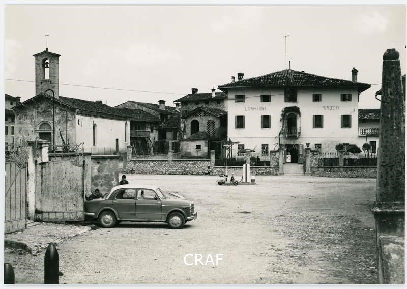 Veduta della piazza di Valeriano vista dalle finestre della locanda Cicuto, con...