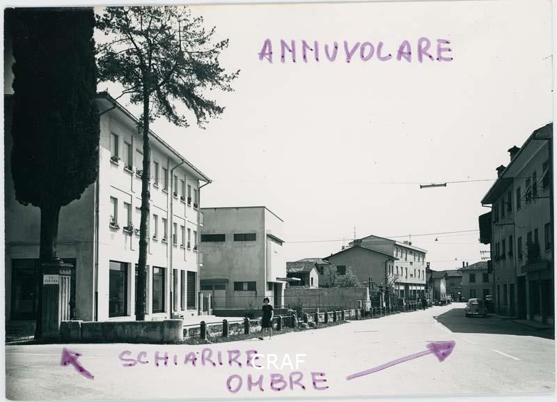 Veduta di via Veneto in direzione di Paparotti; a sinistra il cinema Ellero,...