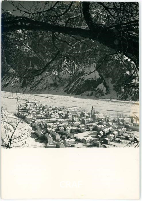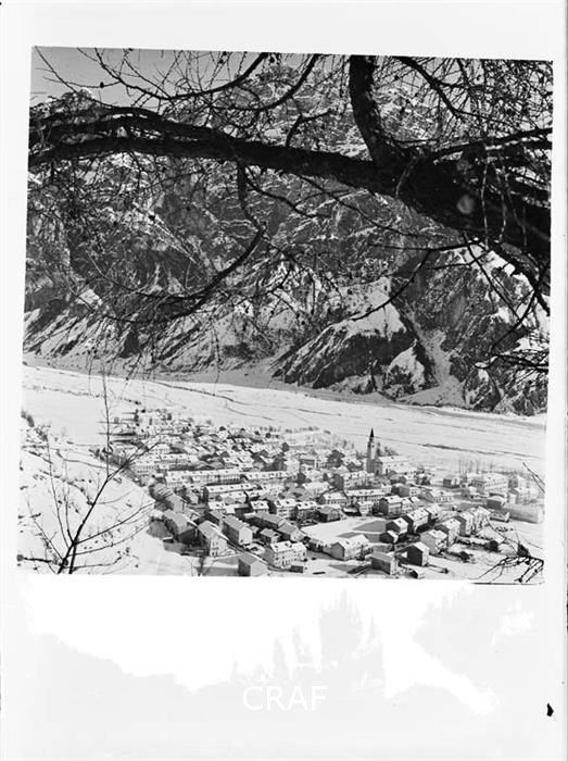 Riproduzione di un panorama invernale di Cimolais ripreso in quota.