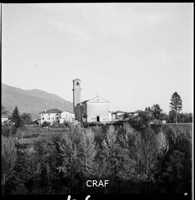 Panorama di Meduno con la chiesa parrocchiale di Santa Maria Maggiore al centro.