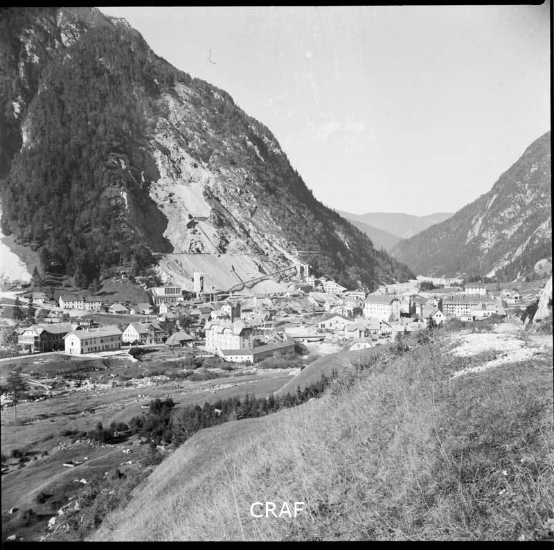Panorama di Cave del Predil fotografato in direzione della Val del Rio del Lago.