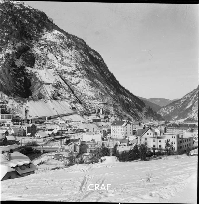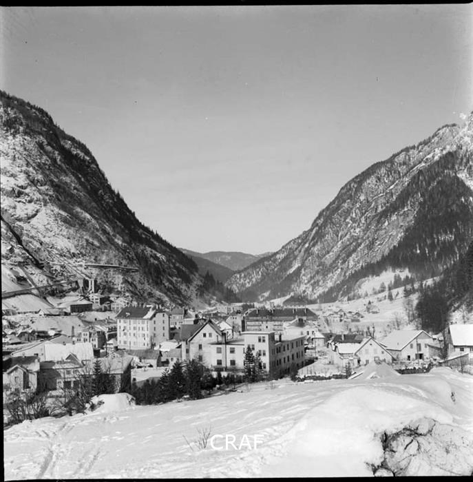 Panorama invernale di Cave del Predil fotografato in direzione della Val del...