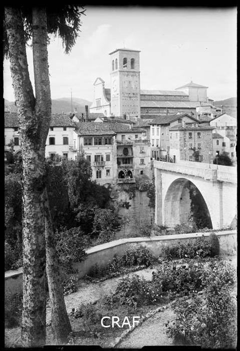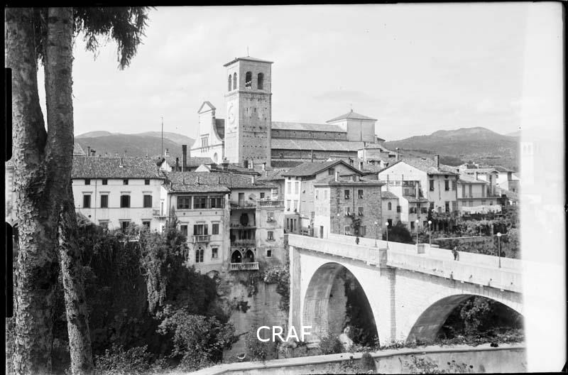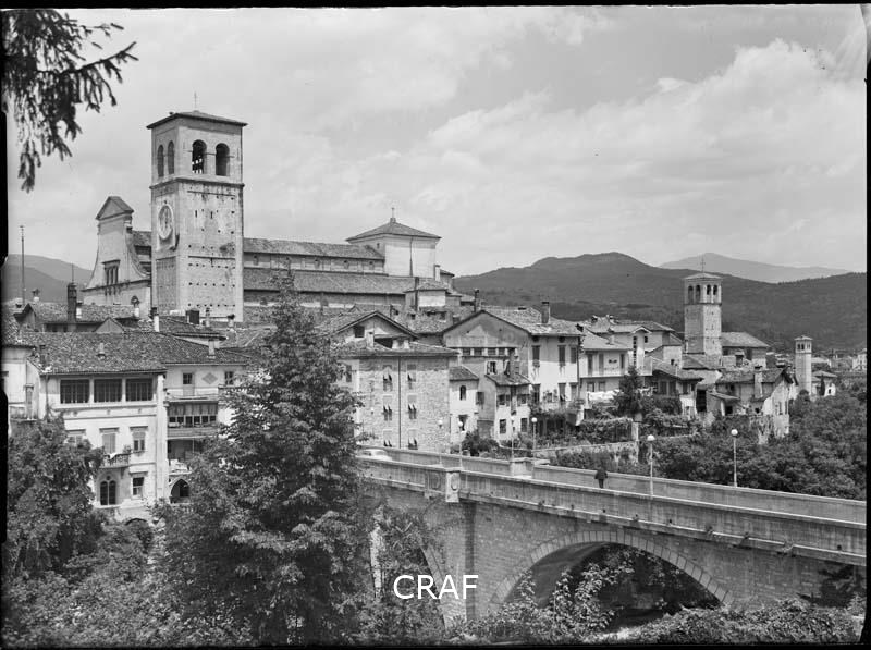 Panorama di Cividale dal Natisone con il duomo al centro e il ponte del Diavolo...